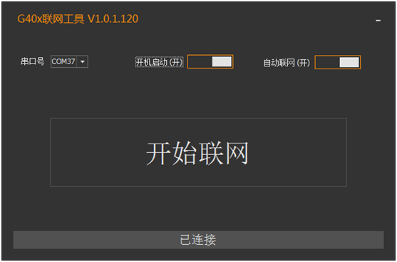 選擇:4G模塊的串口號(hào),使用撥號(hào)軟件自動(dòng)撥號(hào),撥號(hào)成功qq可以在線。