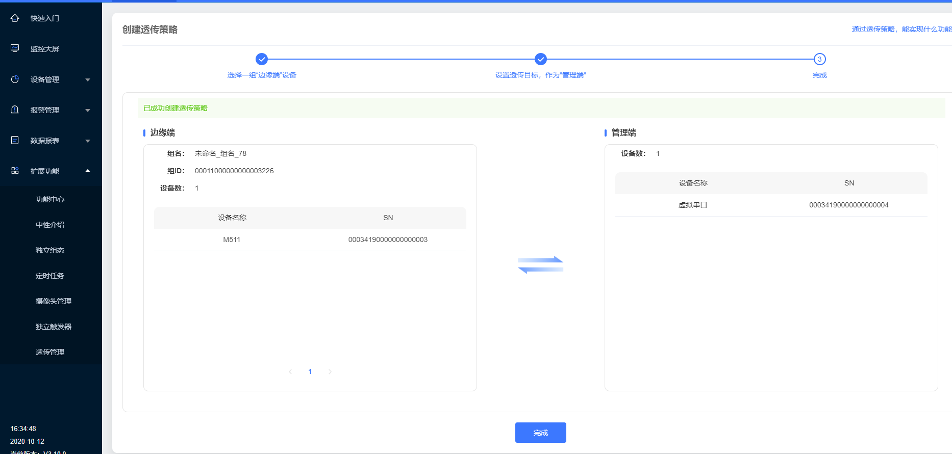 7.點(diǎn)擊擴(kuò)展功能,選擇透傳管理,創(chuàng)建透傳策略