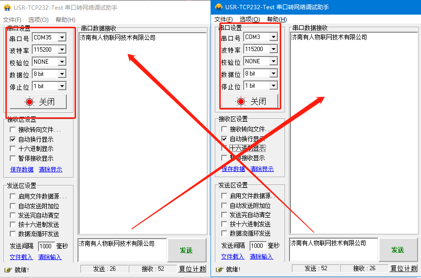 11.用串口調(diào)試助手打開虛擬串口生成的串口和M511的串口(兩個串口參數(shù)必須相同),進(jìn)行數(shù)據(jù)互發(fā)