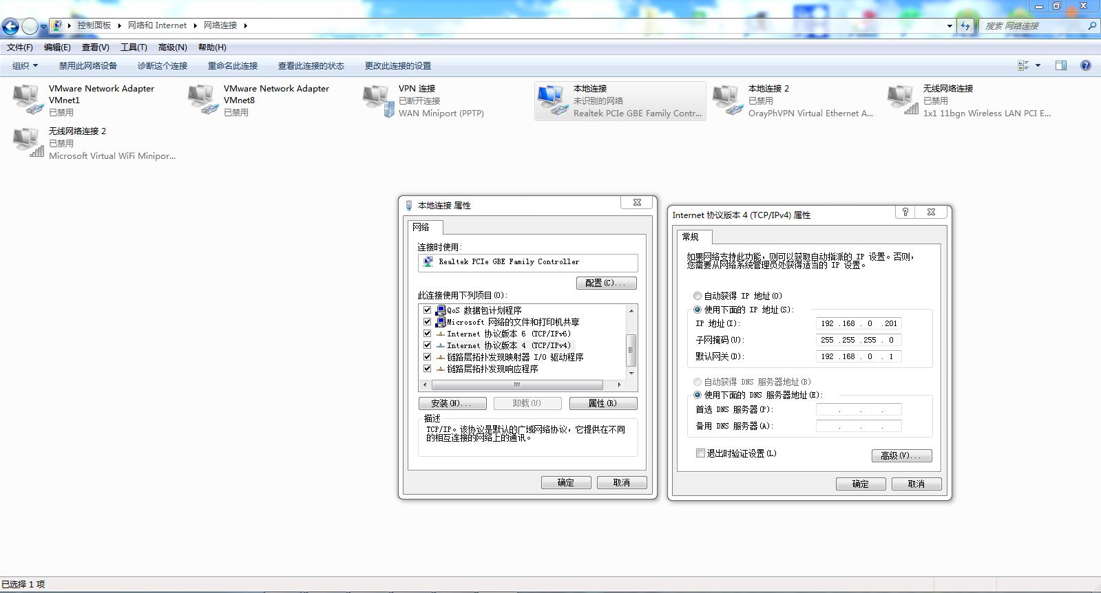 1)電腦本地連接,IP設(shè)置和410S IP同網(wǎng)段,410S默認(rèn)IP是192.168.0.7,網(wǎng)關(guān)192.168.0.1,電腦本地連接IPv4設(shè)置靜態(tài)IP,192.168.0.201,子網(wǎng)掩碼255.255.255.0,網(wǎng)關(guān)192.168.0.1