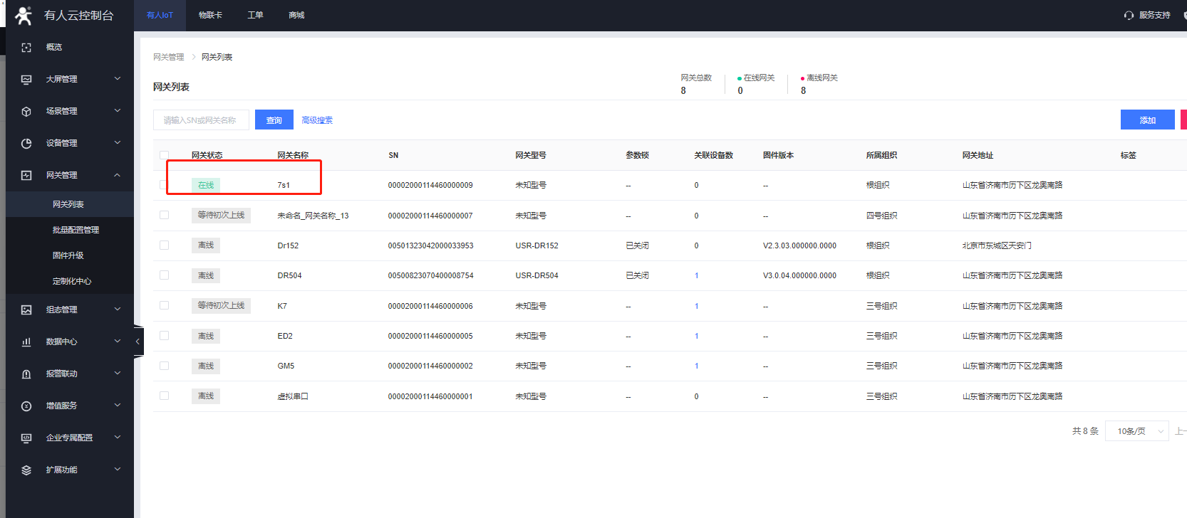 保存參數(shù)重啟設(shè)備可以看到設(shè)備在線(xiàn)。
