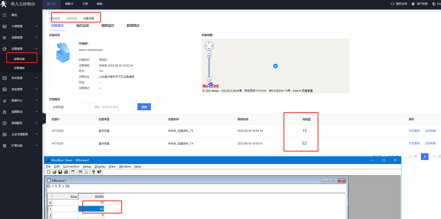 設(shè)備列表可以看到云端采集的從機(jī)數(shù)據(jù)。