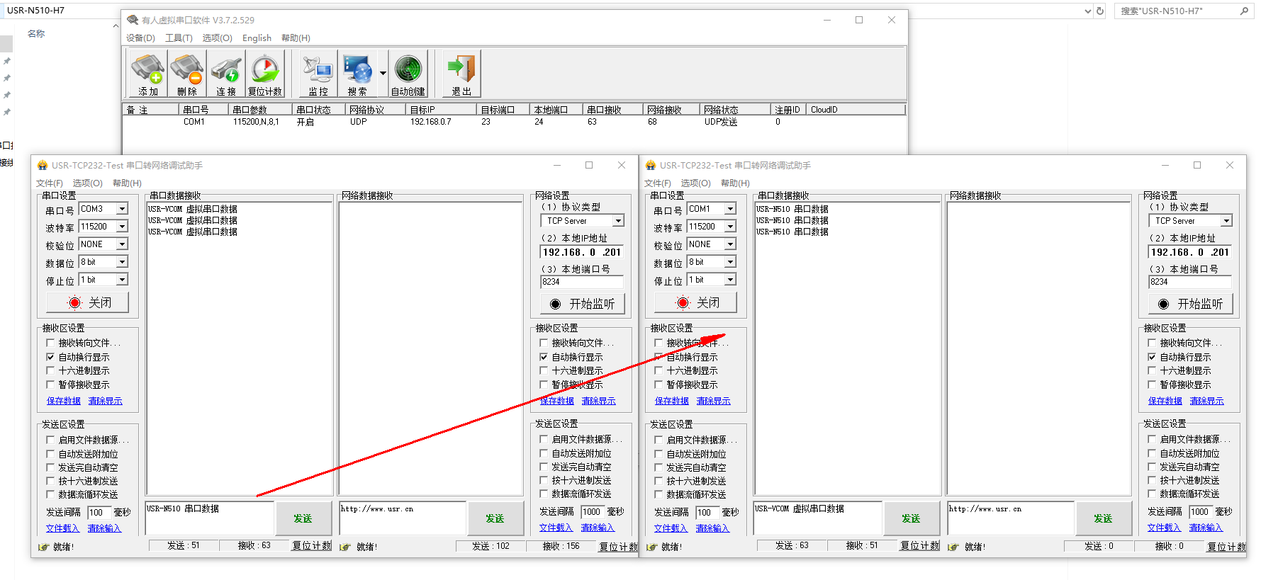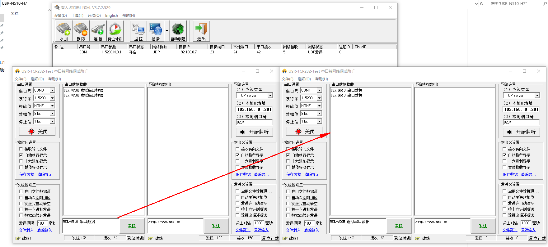 USR-N510-H7和虛擬串口局域網(wǎng)一對一通訊案例