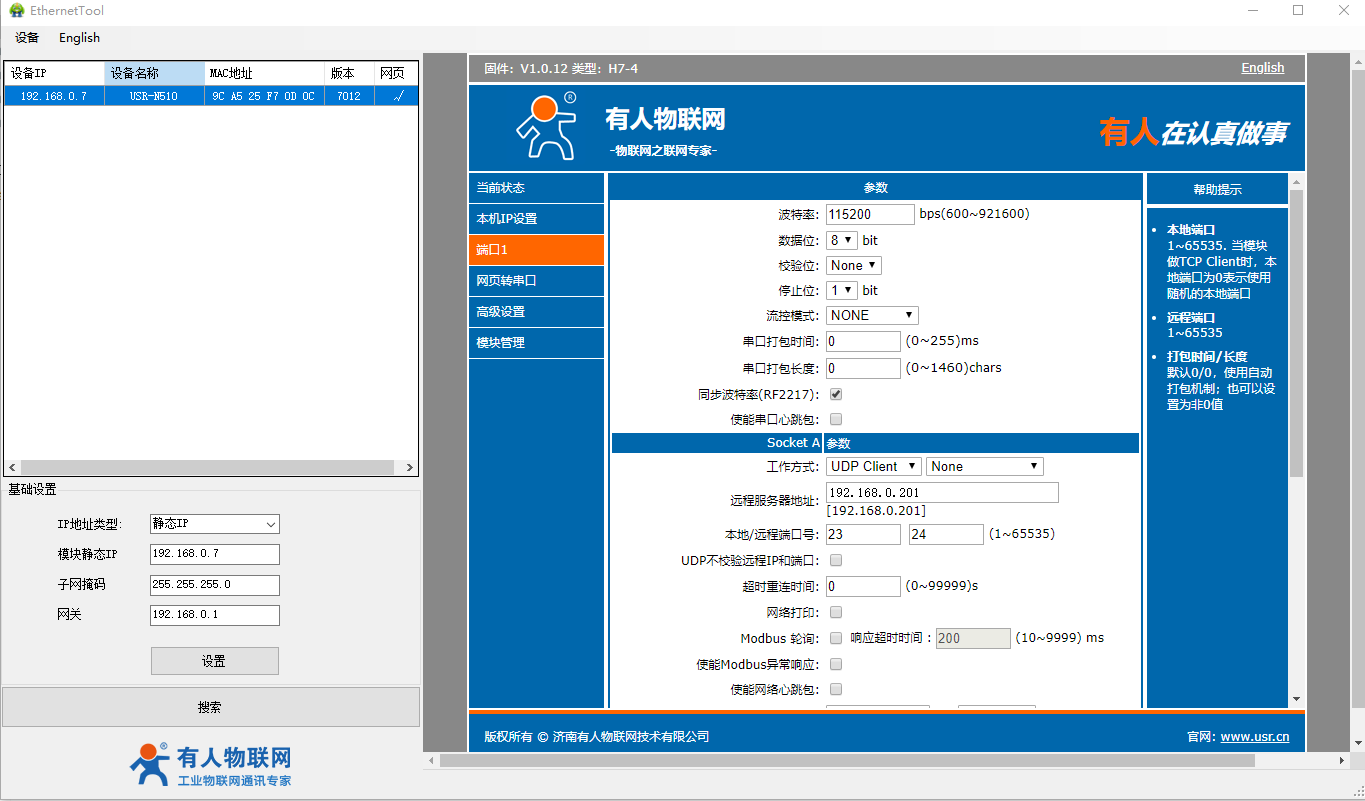 2、USR-N510-H7設置軟件http://lifj.com.cn/Download/383.html