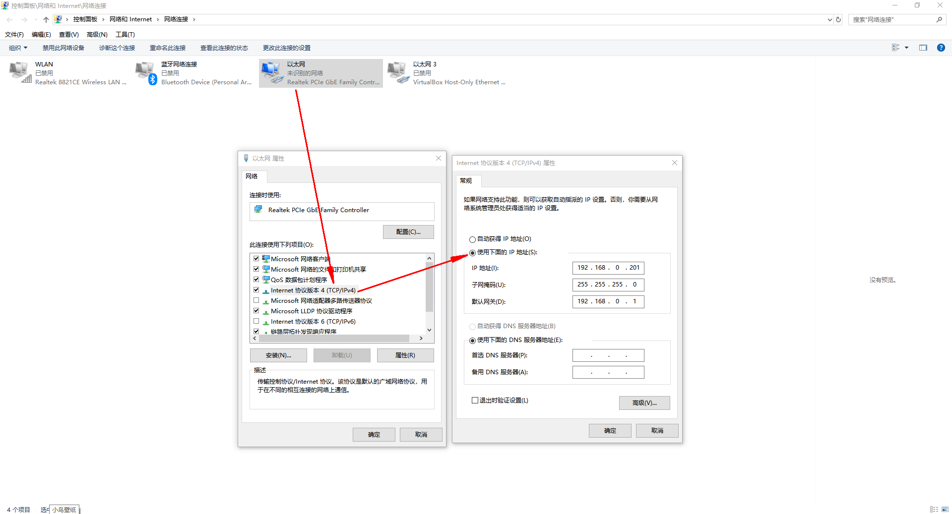 1)電腦本地連接,IP設(shè)置和N510 IP同網(wǎng)段,N510默認IP是192.168.0.7,網(wǎng)關(guān)192.168.0.1,電腦本地連接IPv4設(shè)置靜態(tài)IP,192.168.0.201,子網(wǎng)掩碼255.255.255.0,網(wǎng)關(guān)192.168.0.1。禁用其他網(wǎng)卡。
