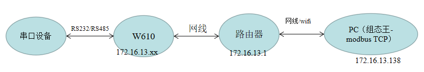 1>硬件連接:W610的串口通過USB轉(zhuǎn)232/485連接到電腦上,接上wifi天線,供電