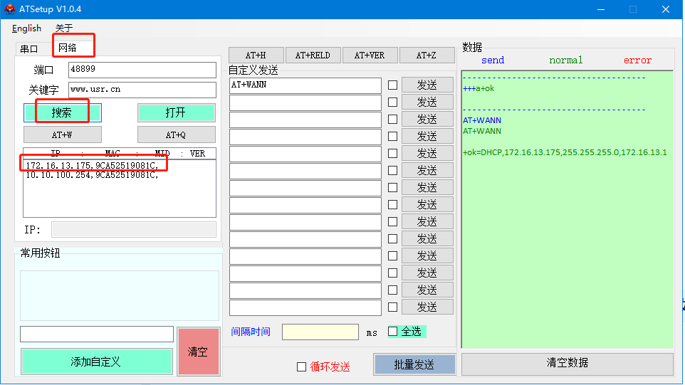1>查詢W610獲取到的IP地址,打開AT設置軟件:共有2中方式,