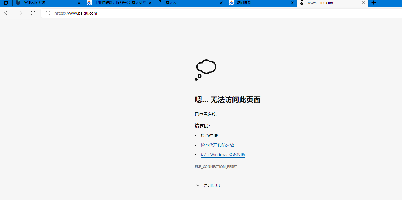 (1)未添加域名白名單之前,能正常訪問www.baidu.com