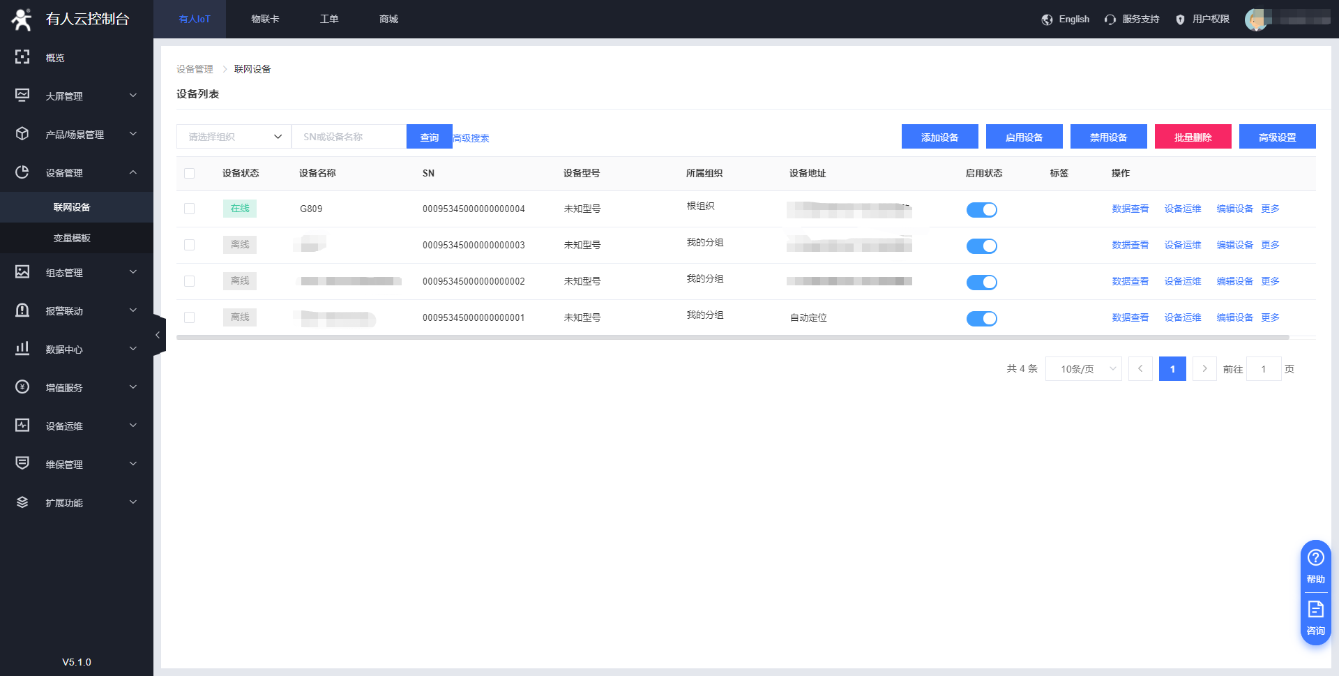 7>等待G809重啟成功,在有人云平臺(tái)成功上線