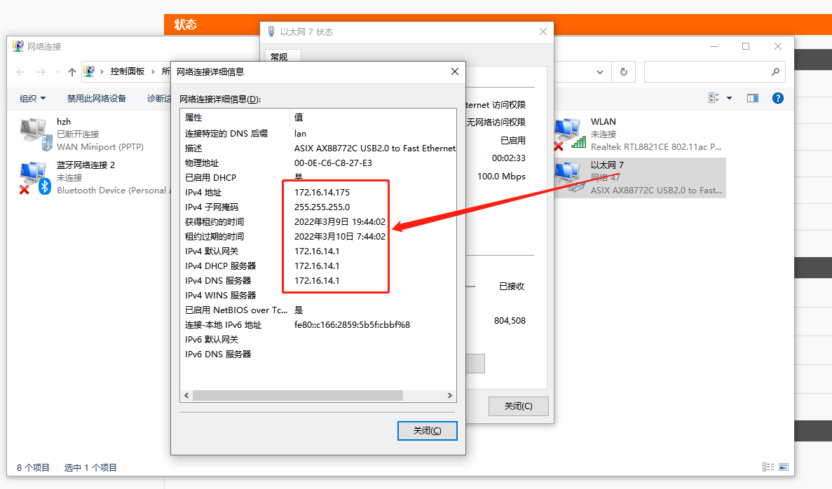 1、該功能也可以在設備不駐網(wǎng)情況下測試。LAN口網(wǎng)線直連電腦,給設備上電??梢钥匆幌?個LAN口動態(tài)獲取到的IP皆為192.168.1網(wǎng)段