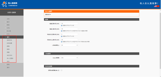 2、默認(rèn)開啟有人云服務(wù)功能。界面可以配置流量統(tǒng)計(jì)、網(wǎng)絡(luò)監(jiān)測(cè)、參數(shù)配置、固件升級(jí)、等有人云特殊功能