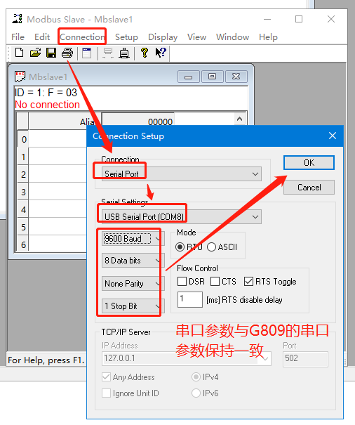 5. 波特率修改,G809串口出廠默認是115200,N,8,1