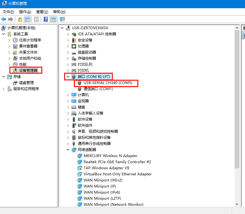 2、檢查USR-RS485串口線的COM口號,點擊電腦計算機(jī),右擊鼠標(biāo),點擊設(shè)備管理器,查看端口,確認(rèn)USB-RS485串口線的COM口號,有人測試電腦是COM5。