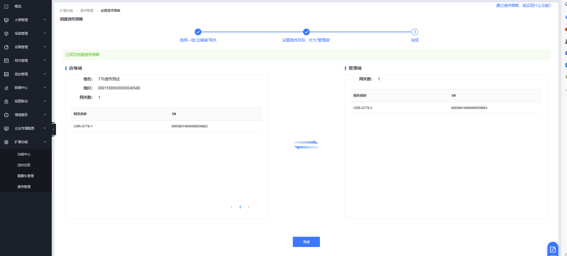 透傳策略創(chuàng)建完成