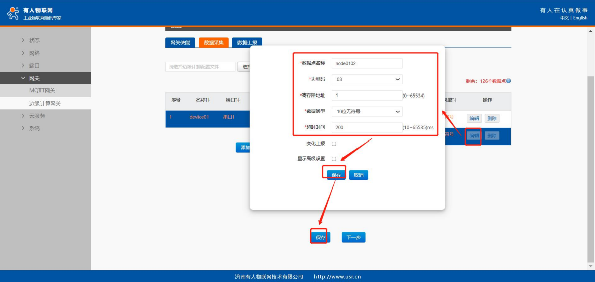 (7)點(diǎn)擊“保存”,保存該數(shù)據(jù)點(diǎn)配置