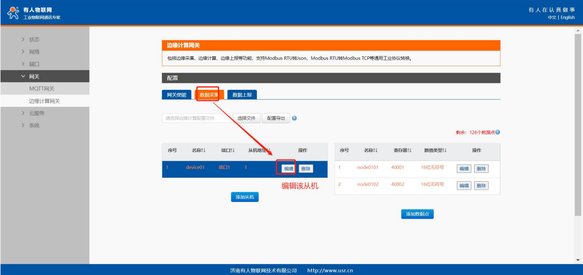 (2) 在“數(shù)據(jù)采集”配置頁選中默認(rèn)從機(jī),點(diǎn)擊“編輯”