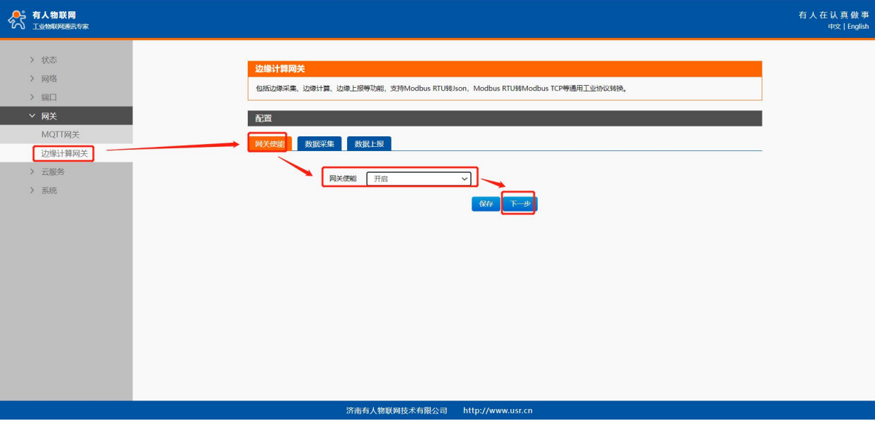 (1)進(jìn)入N510的內(nèi)置網(wǎng)頁,選擇網(wǎng)關(guān)下面的邊緣計(jì)算網(wǎng)關(guān)