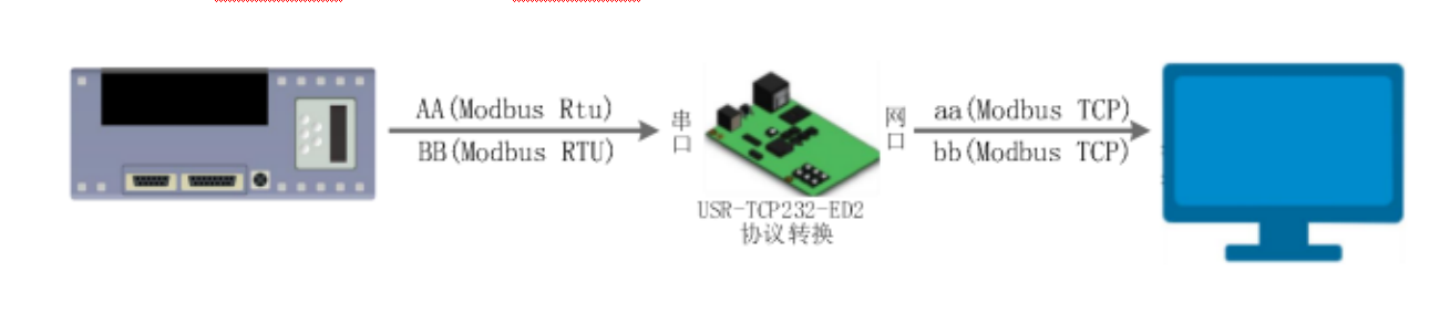 實現(xiàn)的功能:通過設(shè)置可以實現(xiàn) Modbus 串口協(xié)議到 Modbus 網(wǎng)絡(luò)協(xié)議的轉(zhuǎn)換
