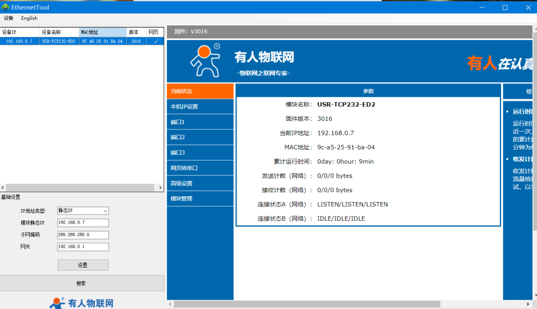 USR-TCP232-ED2的H7系列設(shè)置軟件:http://lifj.com.cn/Download/383.html