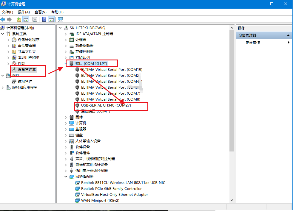 2、檢查USR-RS485串口線的COM口號,點擊電腦計算機,右擊鼠標,點擊設(shè)備管理器,查看端口,確認USB-RS485串口線的COM口號,有人測試電腦是COM27。