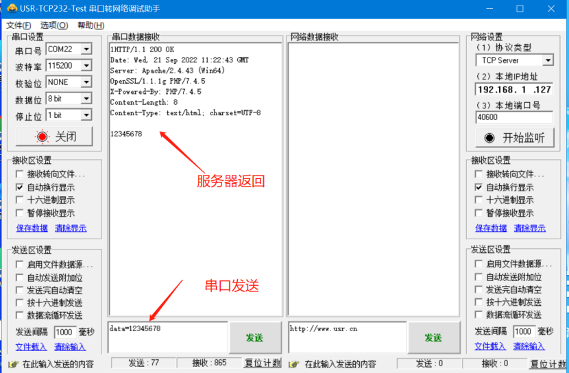 USR-TCP232-E2(M4) HTTPD GET模式測試案例