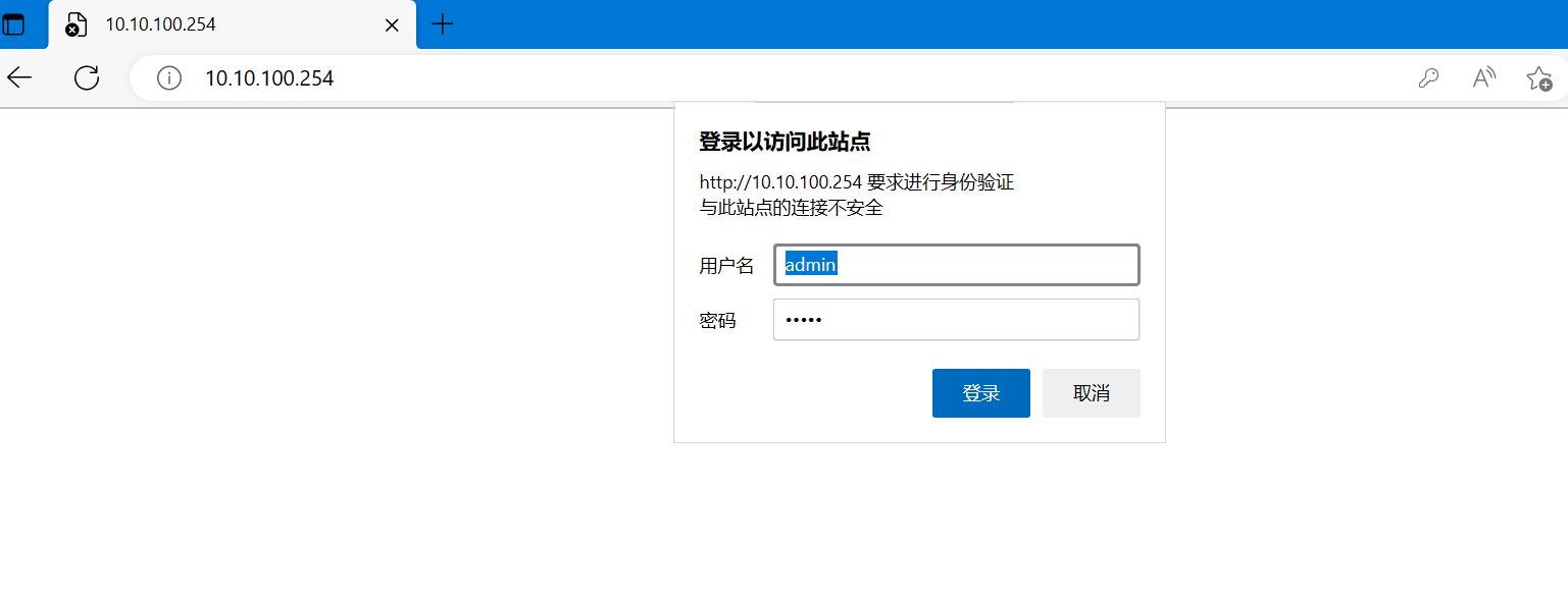 2. DR404的wifi連接成功后,瀏覽器輸入DR404的默認(rèn)ip地址:10.10.100.254進(jìn)入內(nèi)置網(wǎng)頁(yè)(進(jìn)不去內(nèi)置網(wǎng)頁(yè):清除瀏覽器所有緩存,更換其他瀏覽器進(jìn)行嘗試),輸入網(wǎng)頁(yè)默認(rèn)用戶名和密碼:admin和admin