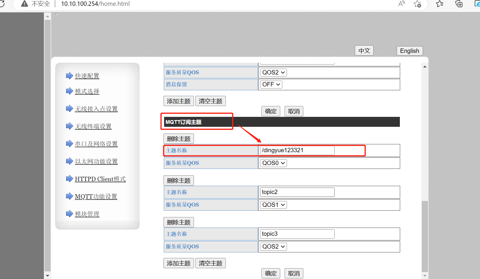 填寫好“訂閱主題”和“發(fā)布主題”后,點(diǎn)擊“確定”并重啟設(shè)備。