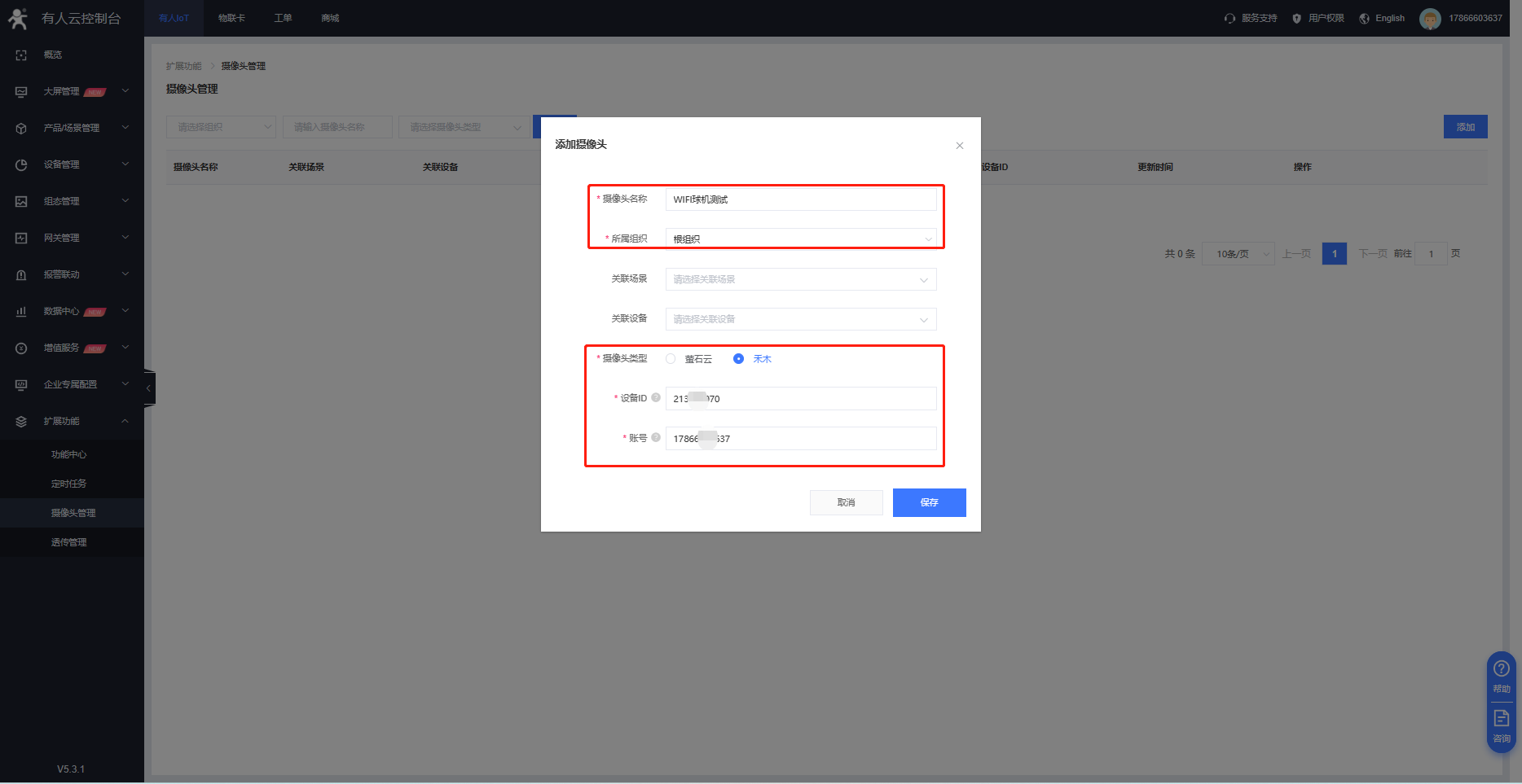 9.登錄有人左側(cè)導(dǎo)航欄擴(kuò)展功能—攝像頭管理—添加