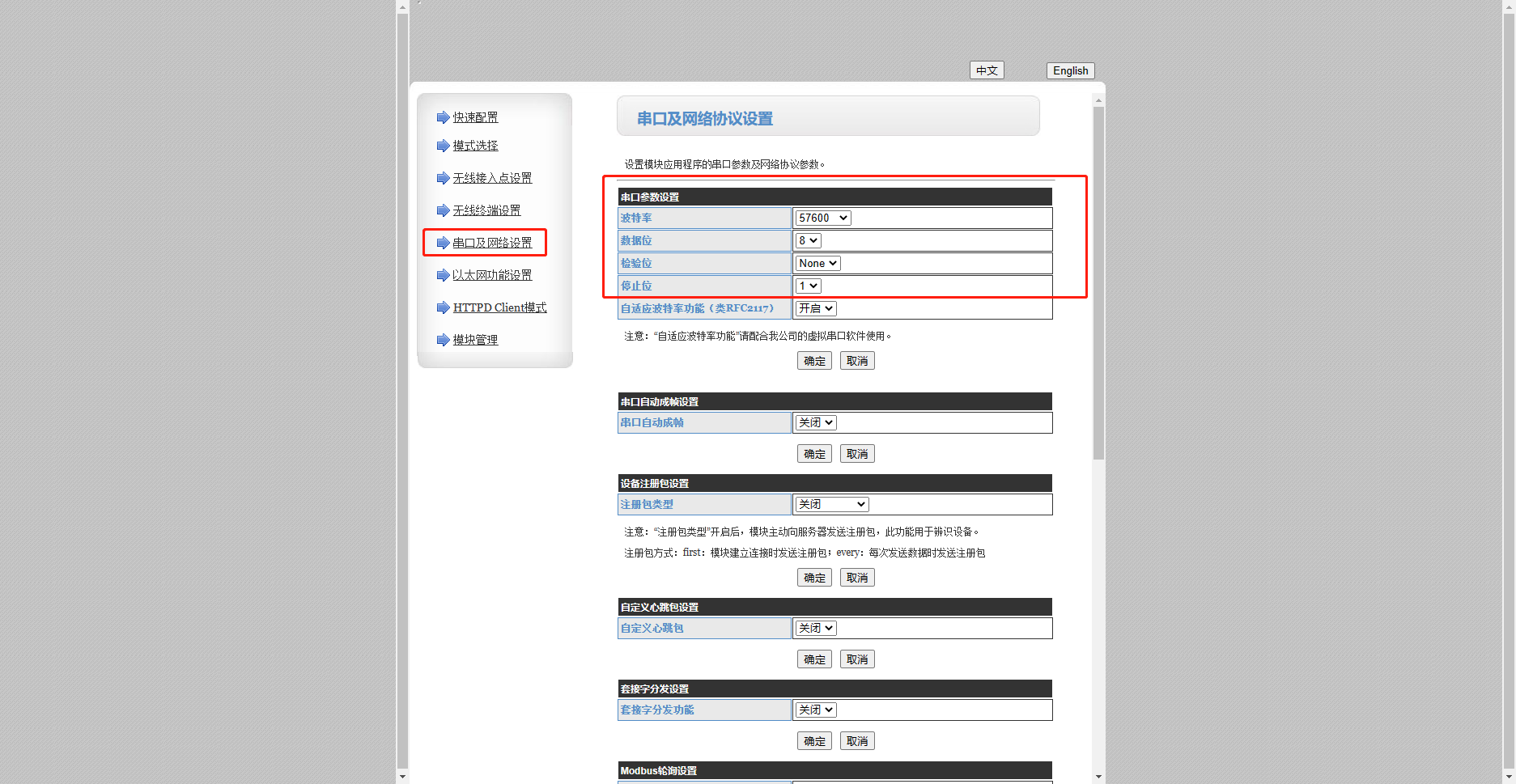 5、串口及網(wǎng)絡設置,可以根據(jù)實際情況修改W630的串口等參數(shù)在本案例中我們保持W630出廠默認參數(shù)