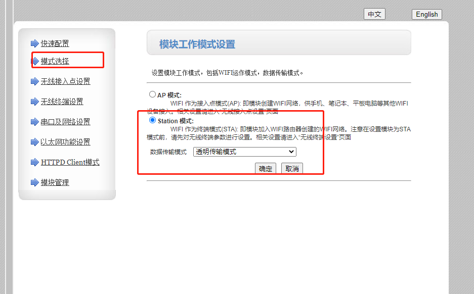 兩個W630 要實現(xiàn)一對一對傳,一個做AP 模式設置TCP server,另一個STA 模式設置TCP client。