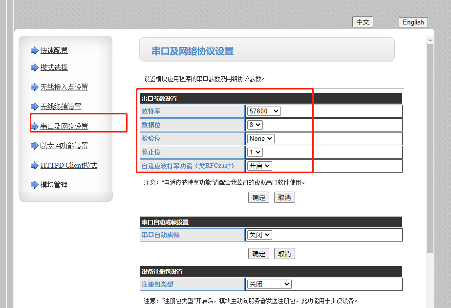 3、【串口及網(wǎng)絡設置】串口參數(shù)和實際連接的傳感器的參數(shù)保持一致,本案例以默認為主。