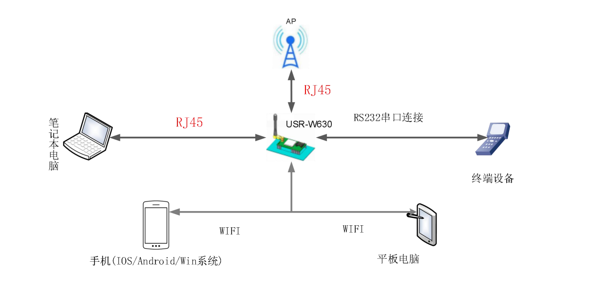 1、W630的網(wǎng)口 2 連接上級(jí)路由器,網(wǎng)口 1 連接電腦。這樣,電腦、串口服務(wù)器、路由器就在同一個(gè)網(wǎng)段 。 W630相當(dāng)于一個(gè)交換機(jī)橋連了路由器和電腦。