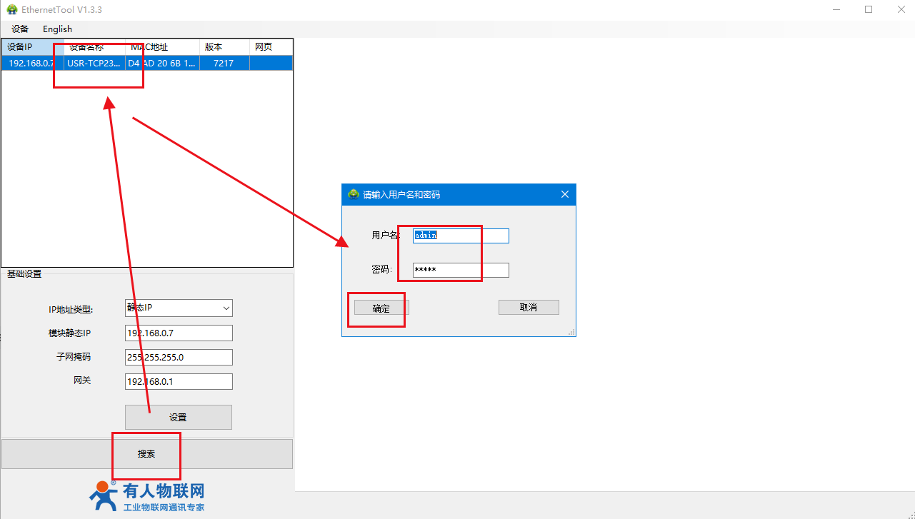 USR-TCP232-ED2的H7系列設(shè)置軟件:http://lifj.com.cn/Download/383.html