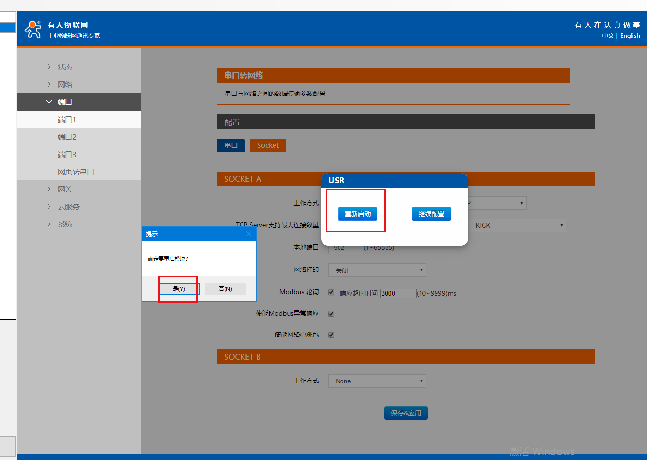 設(shè)置參數(shù)之后,點(diǎn)擊保存設(shè)置,重啟模塊