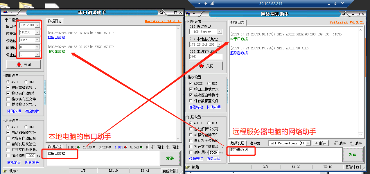互發(fā)送數(shù)據(jù)測(cè)試成功。