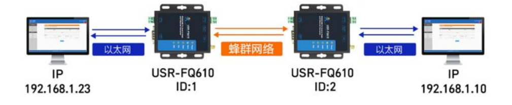 為方便測(cè)試,兩臺(tái)USR-FQ610串口均接電腦進(jìn)行測(cè)試。