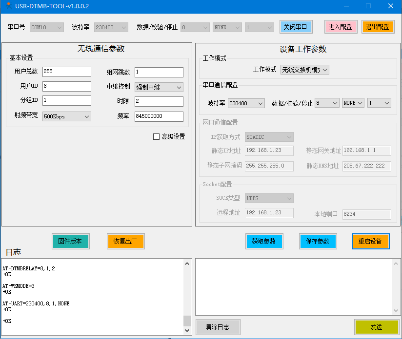 電腦打開(kāi)USR-DTMB-TOOL設(shè)置軟件
