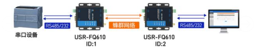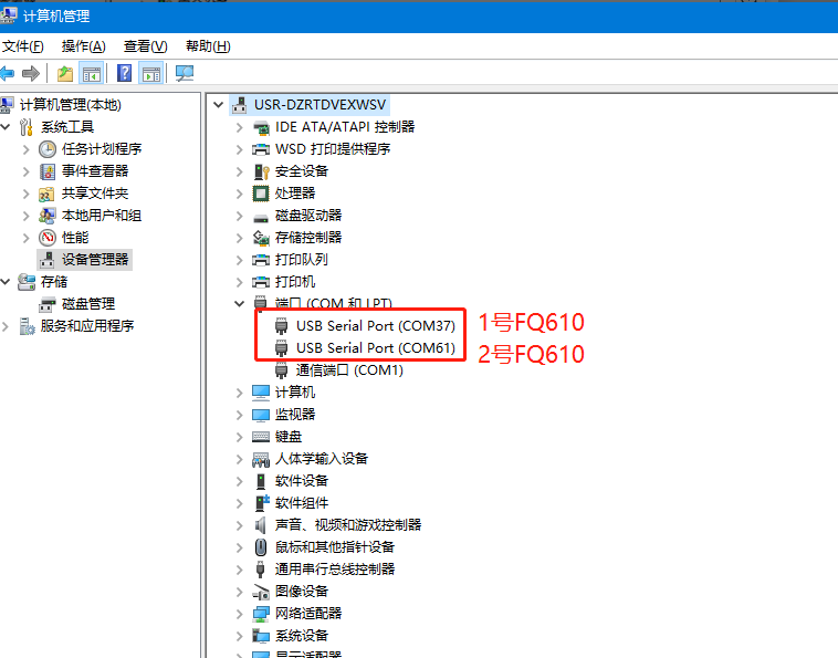 為方便測試,兩臺USR-FQ610串口均接電腦進行測試。