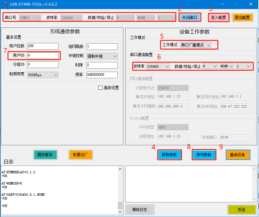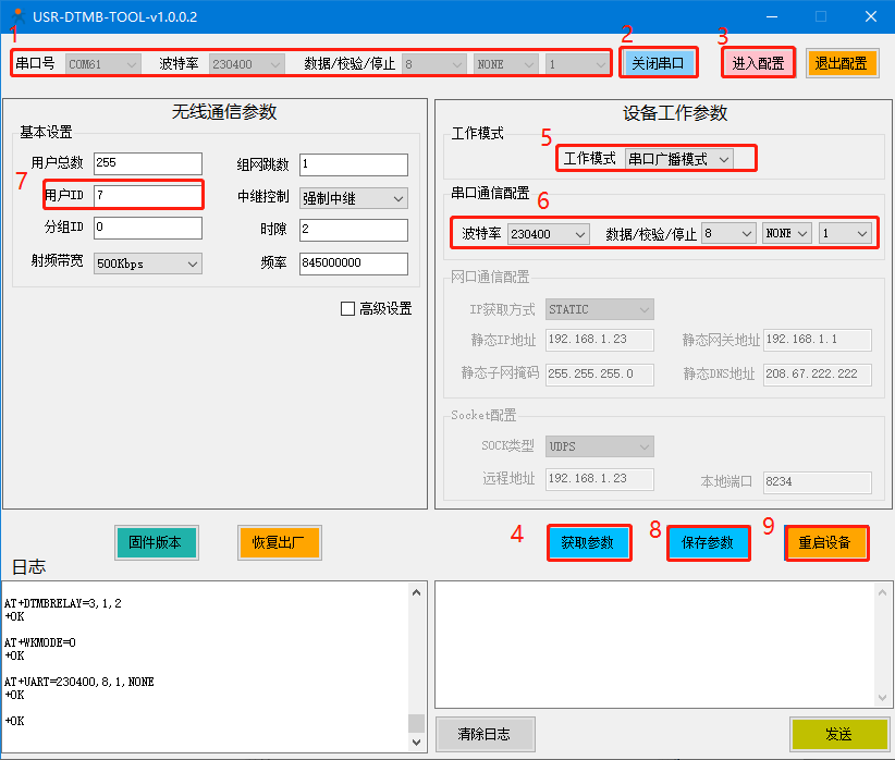 G. 點擊保存參數(shù),點擊重啟設備,點擊關閉串口。