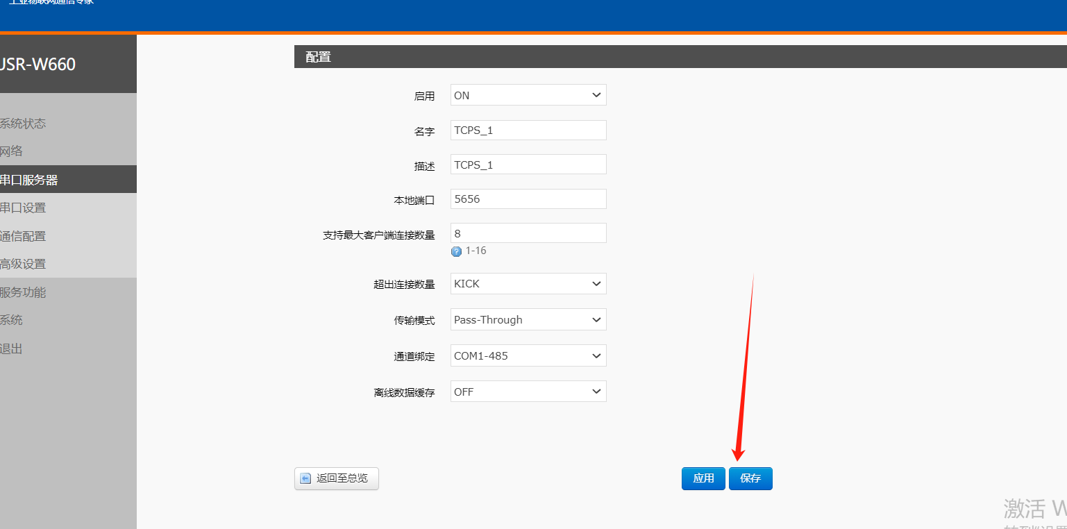 5、設(shè)置設(shè)備本地端口為5656 ,服務(wù)器的IP就是W660的本身的IP192.168.1.1不用設(shè)置。設(shè)置完參數(shù)保存重啟才會(huì)生效