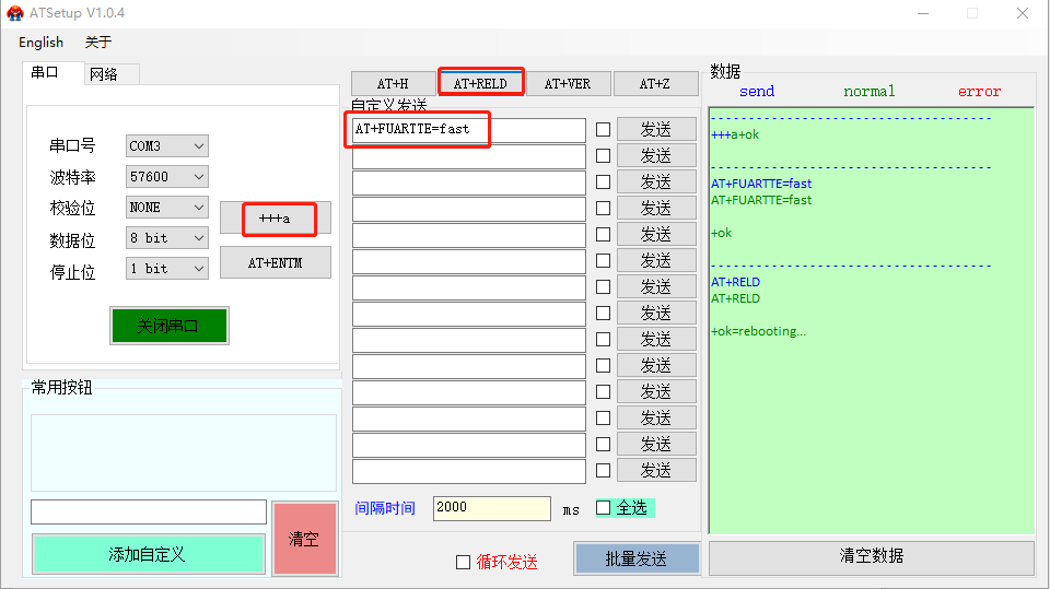 2、發(fā)送AT+FUARTTE=fast,返回+ok