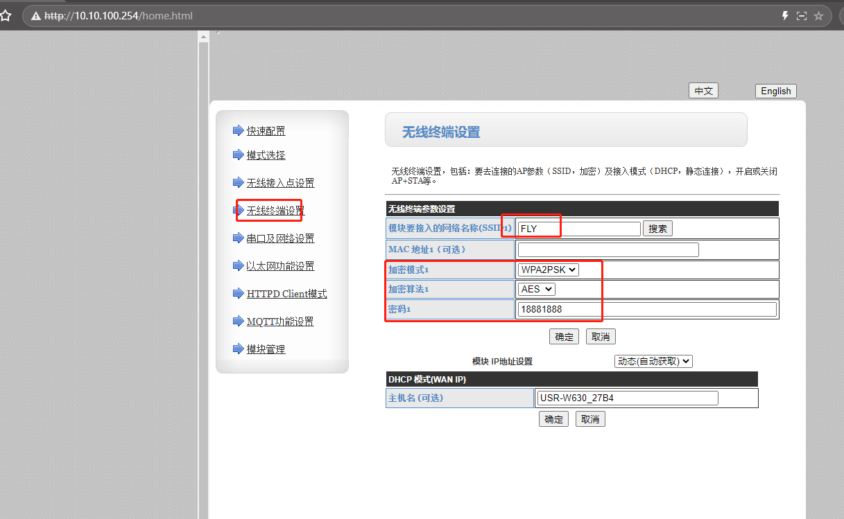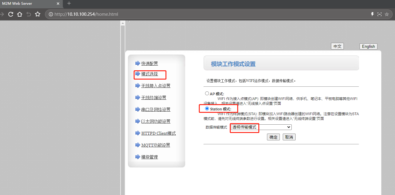 網(wǎng)頁上設(shè)置STA模式,開啟透明傳輸模式,點擊確定。不要重啟模塊,等所有參數(shù)都配置完了,再重啟W630。