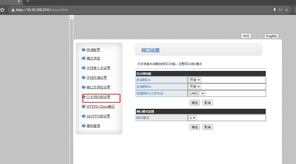使用USR-W630默認IP,10.10.100.254,在瀏覽器輸入登錄USR-W630內(nèi)置網(wǎng)頁,登錄名是admin,登錄密碼admin。