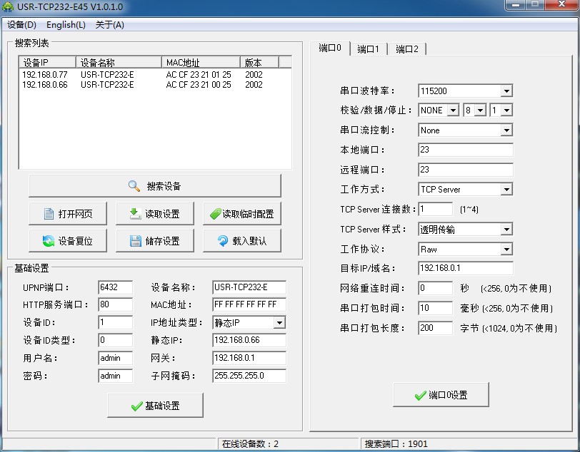 通過(guò)我們提供的搜索協(xié)議和軟件可以獲得模塊的IP地址。