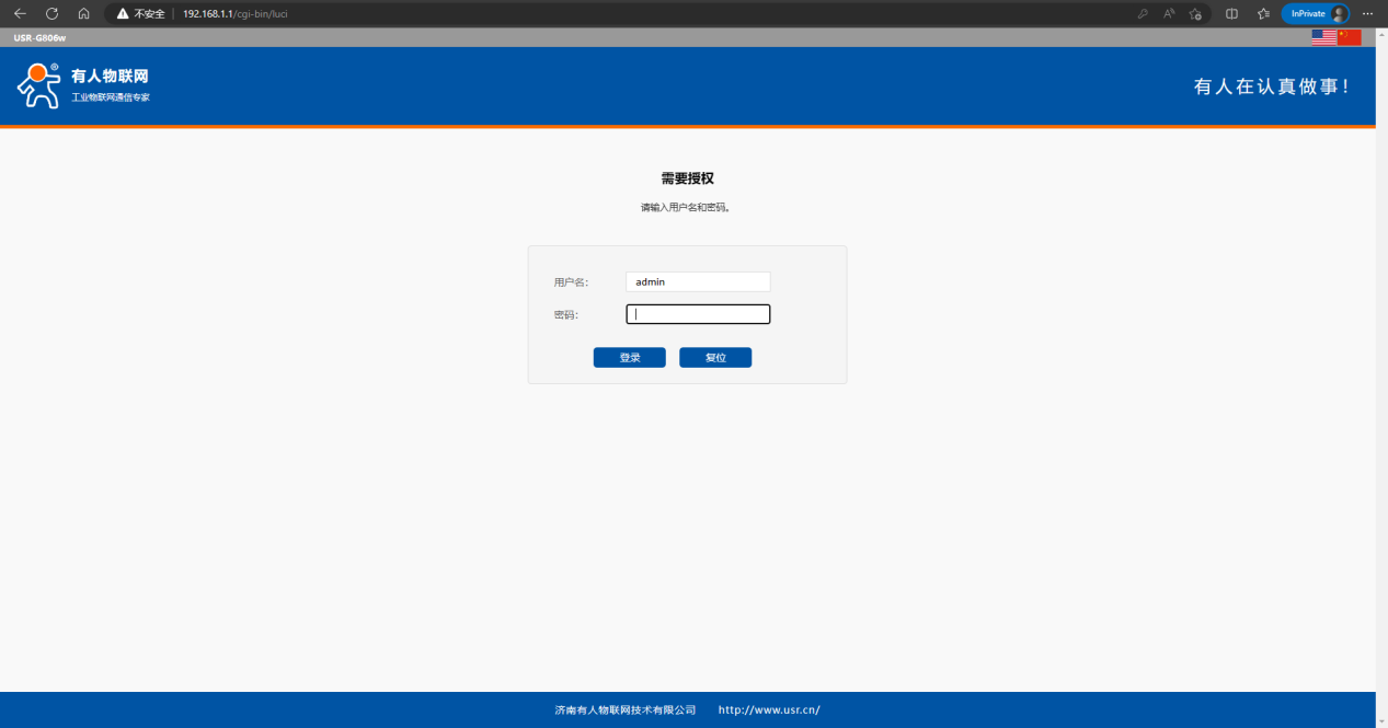 G806w通過(guò)wifi(默認(rèn)開(kāi)啟AP功能)連接電腦(PC1),輸入默認(rèn)LAN口IP:192.168.1.1進(jìn)入內(nèi)置網(wǎng)頁(yè)。用戶名/密碼默認(rèn)為admin。