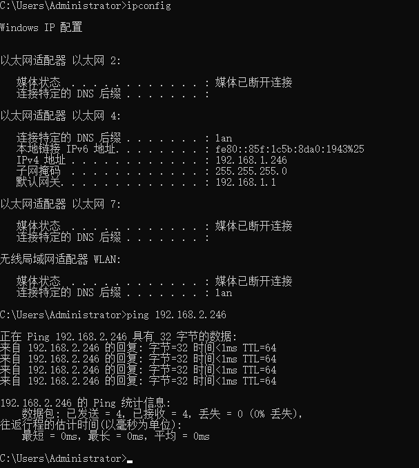 全部設(shè)置完成后,兩臺(tái)電腦互相ping對(duì)端電腦(注意:電腦多網(wǎng)卡時(shí)請(qǐng)帶對(duì)應(yīng)的網(wǎng)卡ping)。