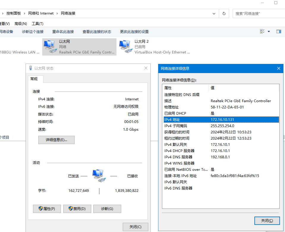 3、用網(wǎng)線把電腦也連接在同一個上級路由,此時路由給電腦分配的Ip:172.16.10.131是和G815保持同網(wǎng)段,即可直接使用G815的WAN IP直接進入內(nèi)置網(wǎng)頁。