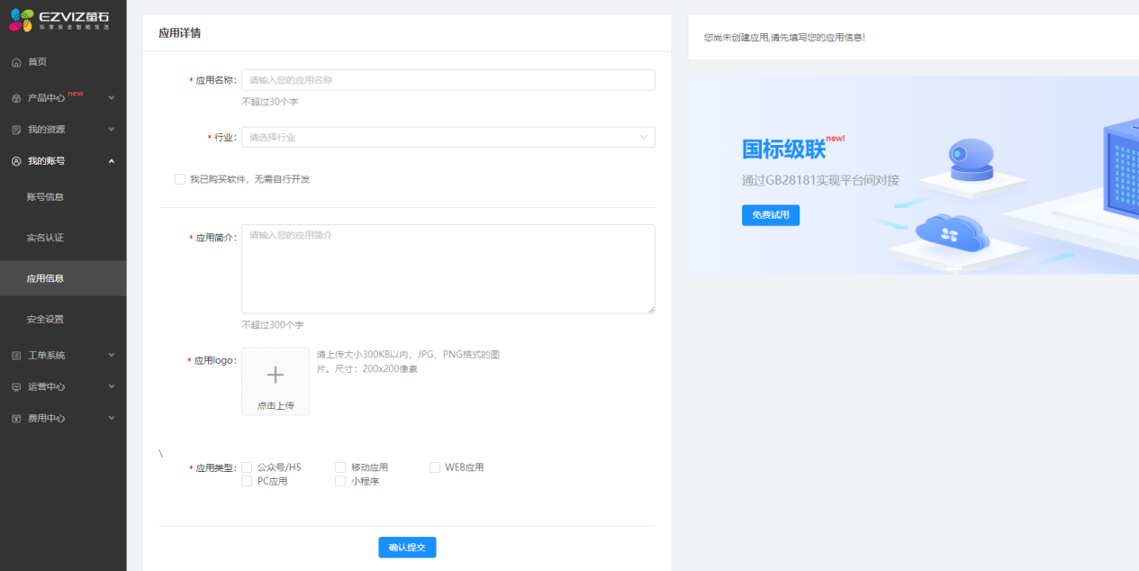 (3)在彈出來的 應(yīng)用信息 界面填寫一個應(yīng)用