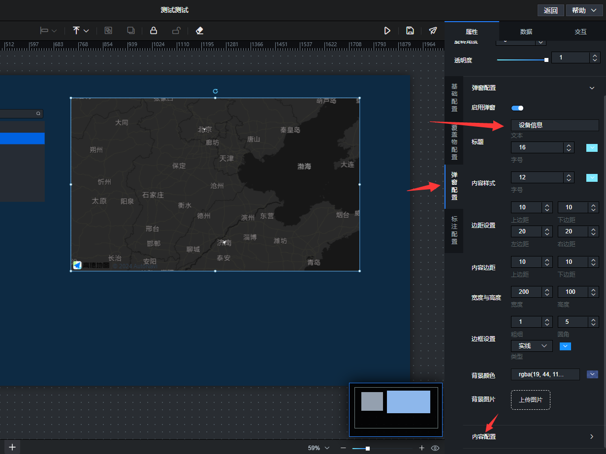 6、在彈窗配置中,配置一下彈窗標(biāo)題,在內(nèi)容配置中自定義配置彈窗內(nèi)容