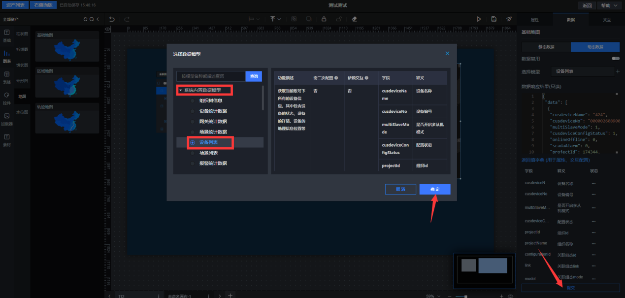 4、選擇系統(tǒng)內(nèi)置模型-設(shè)備列表,確定后提交